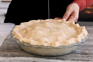 Top with the second crust. Press down gently to remove air pockets. Trim and crimp the edges. Cut a few slits in the top crust for steam to escape. Brush with egg wash or sprinkle with sugar for a rustic look.