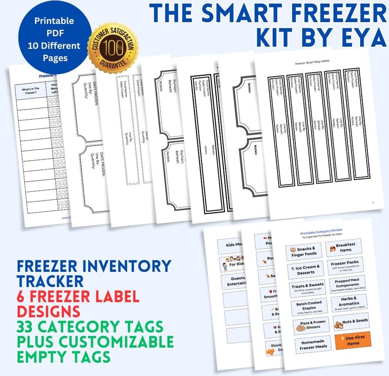 Printable labels, inventory sheets, and category dividers that help you freeze smarter, waste less, and find everything fast.