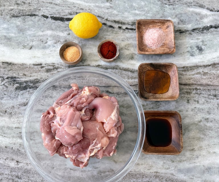In a bowl, mix 3 tbsp soy sauce, 3 tbsp honey, 1 tbsp garlic powder, 1 tbsp paprika, and the lemon zest. Add the already-seasoned chicken thighs and toss until fully coated. Let it marinate for at least 30 minutes, or up to overnight for extra flavor.