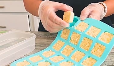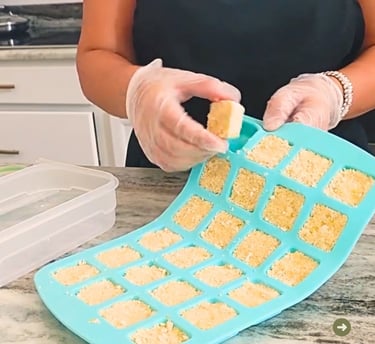Scoop 1 tablespoon of ground garlic into each square of a silicone mold