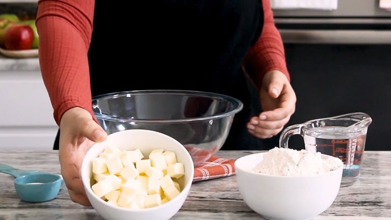 To make this flaky pie dough recipe, you’ll only need a handful of pantry staples: